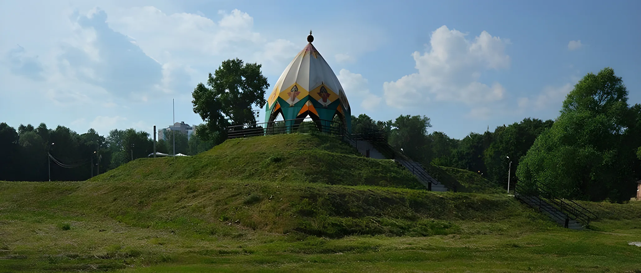 Елабужское городище — это историческое место, расположенное на высоком холме, откуда открывается прекрасный вид на реку Кама и город Елабуга.