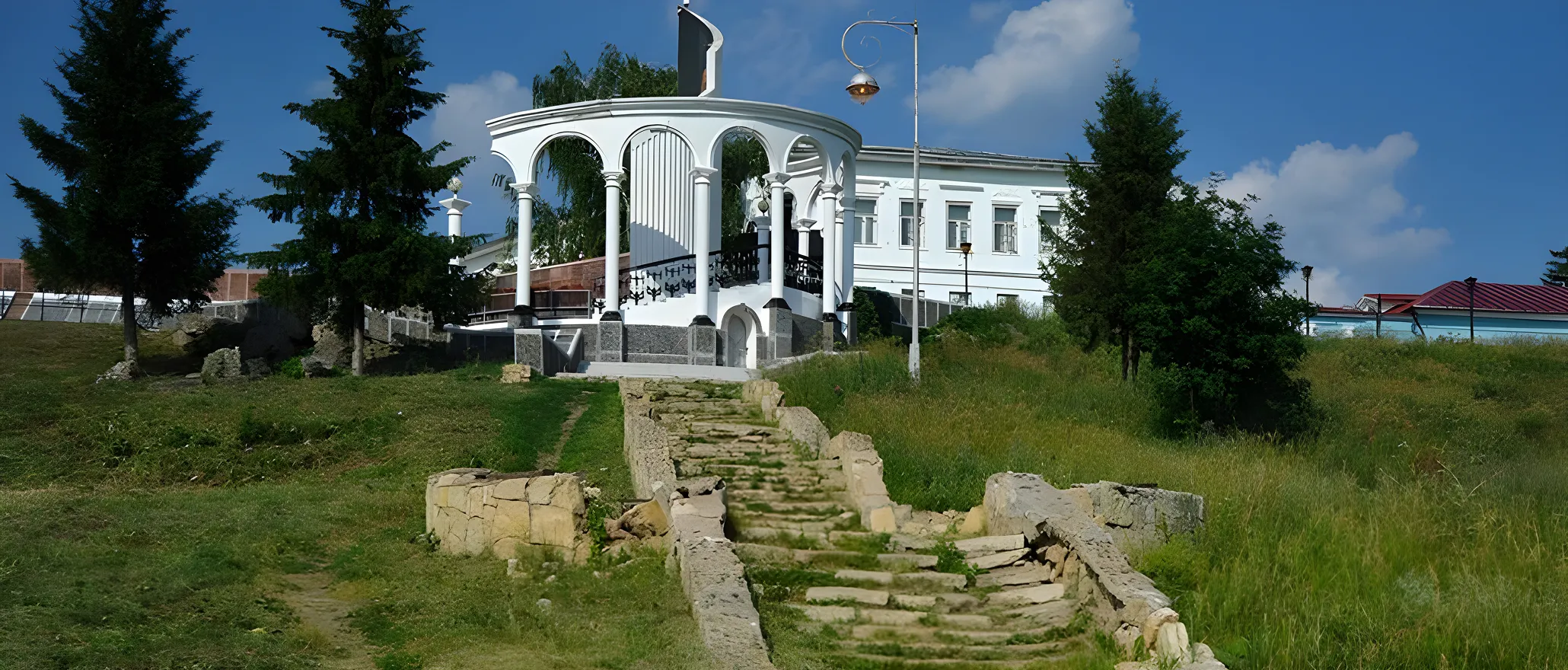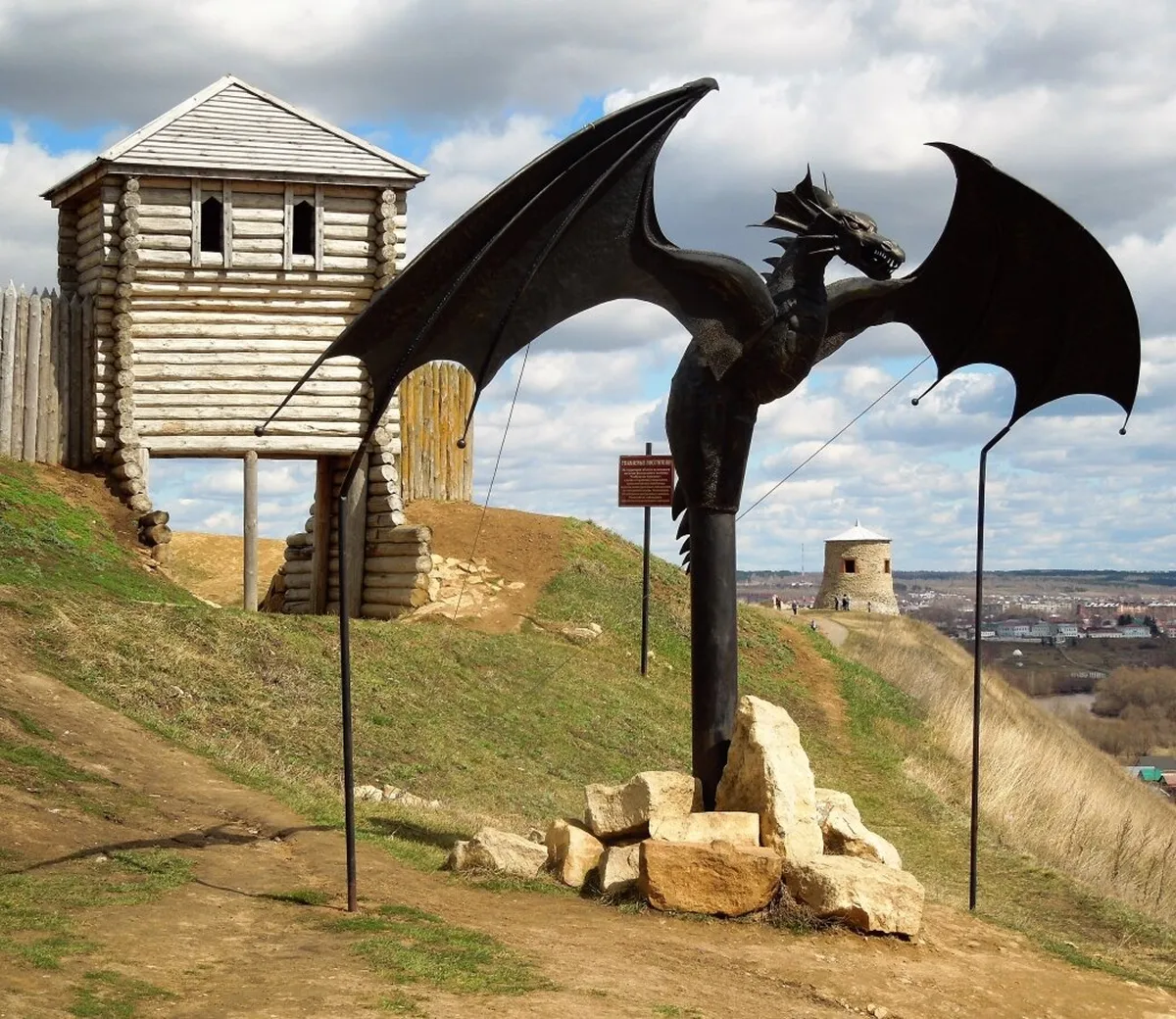 Здесь можно увидеть остатки крепостных стен и старинную башню, а также памятник основателю города — булгарскому эмиру. Кроме того, гости могут посетить ресторан с видом на реку и купить сувениры.